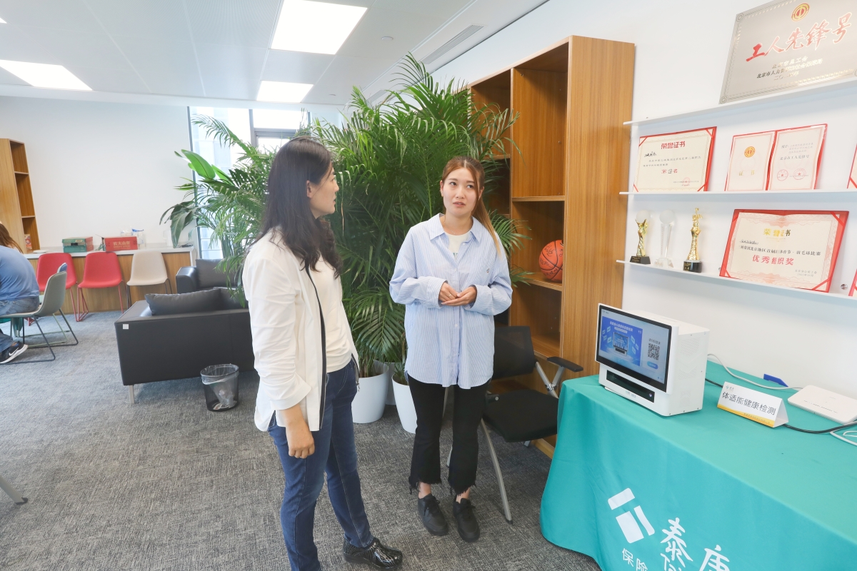 本次健康服務周活動內容豐富、形式多樣。“家庭醫生”服務幫助員工了解并開通激活相關服務,讓員工及其家屬享受到便捷的醫療資源。鷹瞳及體適能健康設備檢測借助大數據算法與人工智能技術,為員工提供全身慢病健康風險以及關節活動度、穩定度和對稱性評估,幫助員工進行健康管理?,F場推拿、針灸、體檢報告解讀服務,讓員工在家門口就能享受到貼心的醫療服務。此外,本次活動還為員工進行國家個人養老金政策解讀,協助員工進行報稅檢視。